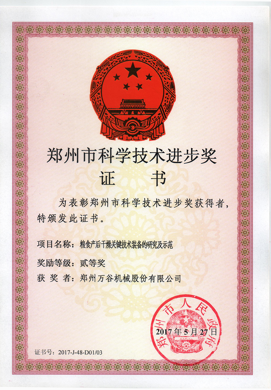 本次公司荣获“郑州市科技进步奖”是对郑州尊龙凯时机械股份有限公司创新团队的高度肯定,也更加坚定了尊龙凯时人“创新立业”的发展理念。郑州尊龙凯时机械股份有限公司将一如既往的在粮食烘干领域不断创新,用先进的技术、高品质的产品服务全国客户、推动我国粮食烘干产业的快速发展。