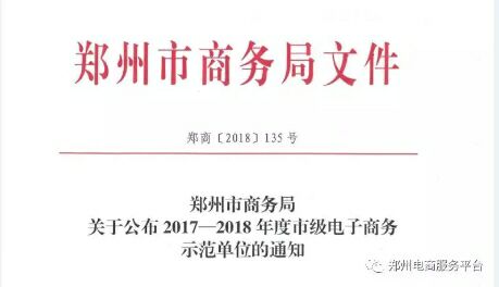 权威发布! 郑州尊龙凯时入选市级电子商务示范单位