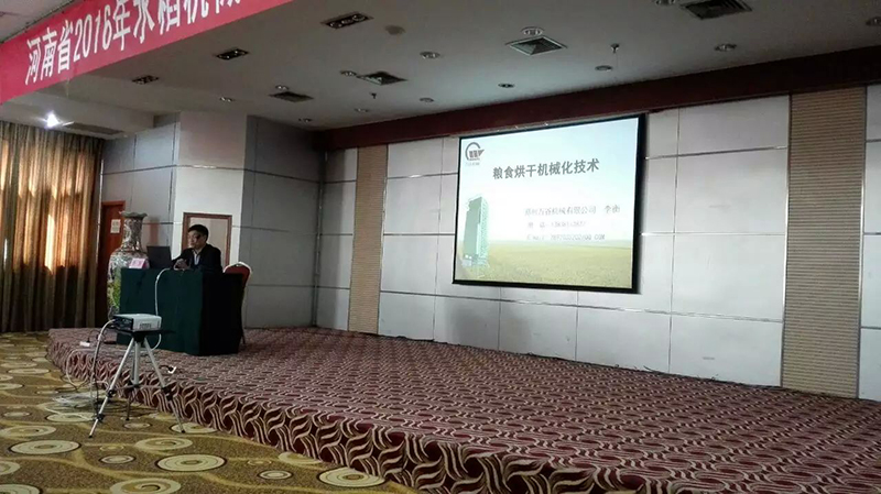 李总在讲座中向与会人员详细阐述了我国粮食干燥行业的发展趋势与现状、粮食烘干机的分类以及如何选择合适的稻谷烘干机等内容。李总的专题讲座对参会代表比较关心的如何选择合适的水稻烘干机着重介绍,由于水稻特殊的理化特性,也就要求了水稻烘干机特殊的结构和烘干工艺,而且我省水稻产区通常还间种小麦、玉米等粮食作物,这也要求在我省推广的水稻烘干机还应兼顾其他粮食作物的烘干处理,这有别于我国南方省份单一烘干水稻的特点。郑州尊龙凯时机械有限公司于2015年获得省级科技成果鉴定产品—小型连续、循环两用粮食烘干机和2014年获得“河南省工业节能产品认定”的大型混流式粮食烘干机很好的解决了以上问题,能耗低、烘后品质好是郑州尊龙凯时机械有限公司水稻烘干机的亮点。