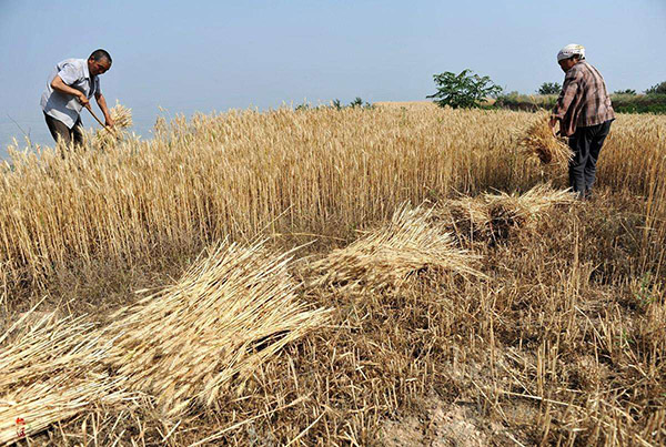 那时的农业生产几乎还是原始的耕作方式,麦子的收割完全靠手工,有的是用镰割,也有用铲的,割下的麦子堆成一堆,然后再用拉车运到打麦场里。打麦场是提前平整的一块光地,一般都是几家相邻乡亲共用的,先把地里的庄稼提前收了,平整土地,再用牲口拉着石磙一遍又一遍的碾压,把场地修整的光滑平整又坚硬。收割的麦子在打麦场里先晾晒,天好的的时候,带着麦穗的的麦秆厚厚的平铺在麦场里,用牛或者马拉着石磙一圈一圈的碾压。