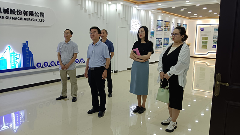 郭主席一行首先来到企业生产车间,陆总向郭主席详细介绍了公司粮食烘干机生产加工工艺流程。郭主席对公司自主研发的粮食烘干机关键部件自动化生产线给与高度评价。随后郭主席一行参观了企业展厅,公司相关负责人详细汇报了企业的发展历程、市场开拓、荣誉资质和产品与服务等企业经营情况。郭主席还详细询问了解了公司自主开发的粮食烘干智能大数据云平台的运行情况,郭主席表示智能大数据云平台是对制造型企业实现高质量发展的强有力的支持,将有利于提高企业市场竞争力、提升企业服务客户的能力。郭主席还表示希望企业能抓住我国高度重视粮食安全的重大发展机遇,不断用新技术、新产品为保障我国粮食安全做出积极贡献。
