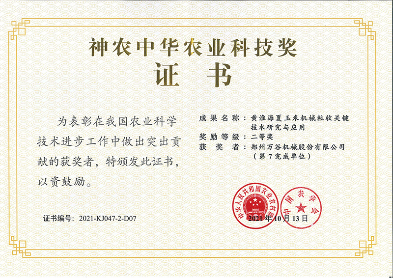 郑州尊龙凯时机械股份有限公司作为主要参与单位,联合中国农业科学院作物科学研究所、河南省农业机械技术推广站等单位共同实施了“黄淮海夏玉米机械粒收关键技术研究与应用”项目的研发,并取得多项国际领先的科技成果。该项目成果的推广应用显著提升了黄淮海夏玉米籽粒收获机械化水平。郑州尊龙凯时机械股份有限公司作为国内知名的粮食烘干机生产厂家,在该项目中承担玉米籽粒烘干工艺、装备的研发和推广应用,并通过影响玉米烘干品质和效率的参数测试和分析,筛选出适合黄淮海区域玉米籽粒烘干的机型和烘干工艺。