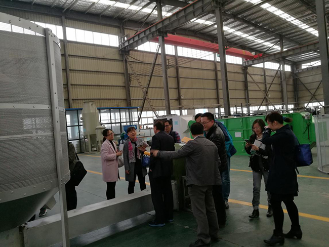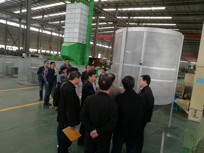 郑州尊龙凯时机械股份有限公司作为我国花生产业技术体系研发合作设备厂家,承担了花生产后干燥和储藏设备的研发和制作工作。会后,与会专家一行莅临郑州尊龙凯时机械股份有限公司实地参观考察公司与河南工业大学联合开发的花生干燥与储藏设备。