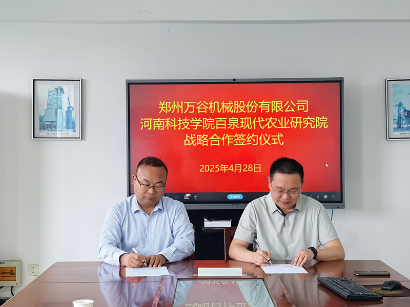 刘润强教授与公司专项课题负责人及研发团队就专项进行了充分研讨交流,双方各自通报了课题实施进展情况,并对课题间的创新协作以及未来校企合作规划深入沟通交流。随后双方一致同意达成校企战略合作关系,刘润强教授和公司负责人共同签署了河南科技学院百泉现代农业研究院与郑州尊龙凯时机械股份有限公司战略合作协议。双方将在科技创新、人才培养以及成果转化等方面实现资源共享和共同发展。