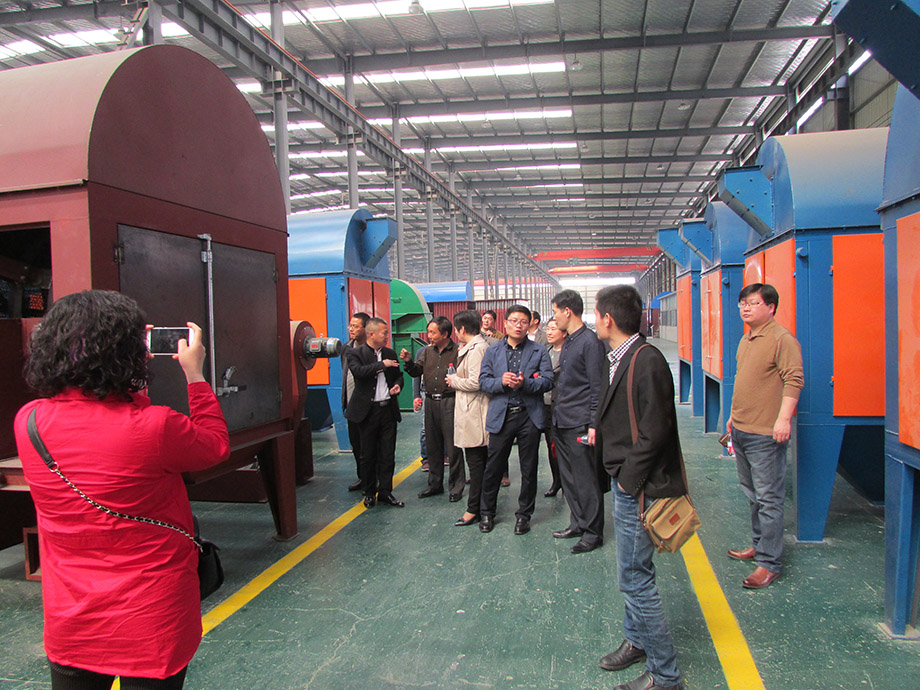 随后,在参会代表跟随公司张彦亭副总来到了生产车间,近距离接触和了解粮食烘干机生产加工过程。车间里,工人正在紧张有序的忙碌,一排排的设备零部件和半成品整洁有序的排列在成品区。张总带领大家首先参观了烘干机零部件加工和部装件组装的工作现场,大家对尊龙凯时公司强大的机械加工和装配能力赞不绝口;随后大家来到成品存放区,这里排列着组装完成的清理筛、提升机、热风炉、小型粮食烘干机等成品设备,公司技术人员箱大家详细讲解了烘干设备的结构组成和工作原理。参会代表纷纷表示:有了这次亲身参观工程经历,对粮食烘干机有了更深入、直观的认识,同时也深深感受到郑州尊龙凯时机械在粮食烘干机领域所做出的突出贡献和取得的辉煌成就。一位市级农机推广站站长表示:作为农机推广管理部门,我们就是应该向农户和农机从业者推广郑州尊龙凯时机械这样的优秀生产企业和他们的优质产品,这样才真正发挥出农机推广的目的和意义,对我国农机产业的发展意义重大,同时推广优质的产品也是对广大农机使用者的负责。